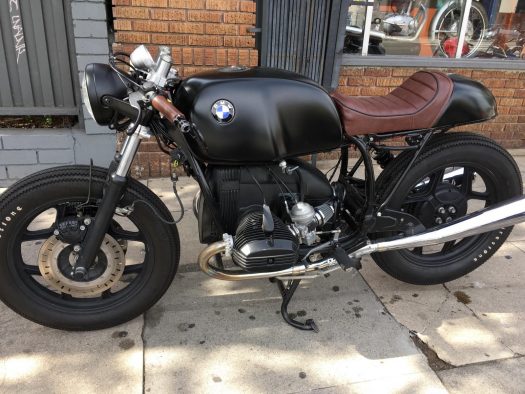 Showing an impressive 28,000 road miles on the clocks, CRM reader Ben Gurerro is understandably proud of what his son Afriano has done with this 1978 Beemer. The R100 Boxer twin was purchased last summer and the previous owner had begun an unsuccessful attempt at turning it into a cafe racer. “With questionable results,” Ben says. Several months later, Adriano turned the neglected German steed into this subtly cool, stealthed-out machine which he rides on the streets of West Hollywood.