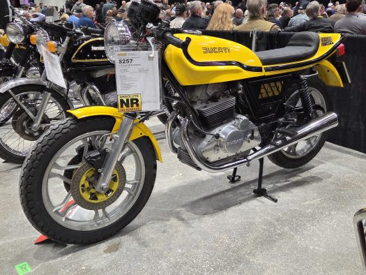 Just when you believe you know just about every Italian motorcycle to be produced over the last half century or so, this oddball Ducati twin appear. The parallel twin, Desmo valve roadster was produced just briefly by the Bologna firm and though it failed to catch on with riders more accustomed to Ducati’s speedy 90-degree twins and early singles, collectors have recently discovered the unloved 350 and prices are starting to rise accordingly. sold for a mere $9,900, this rare, yellow example of undersappreciated tech will be a source of pride and curiosity for its new owner.