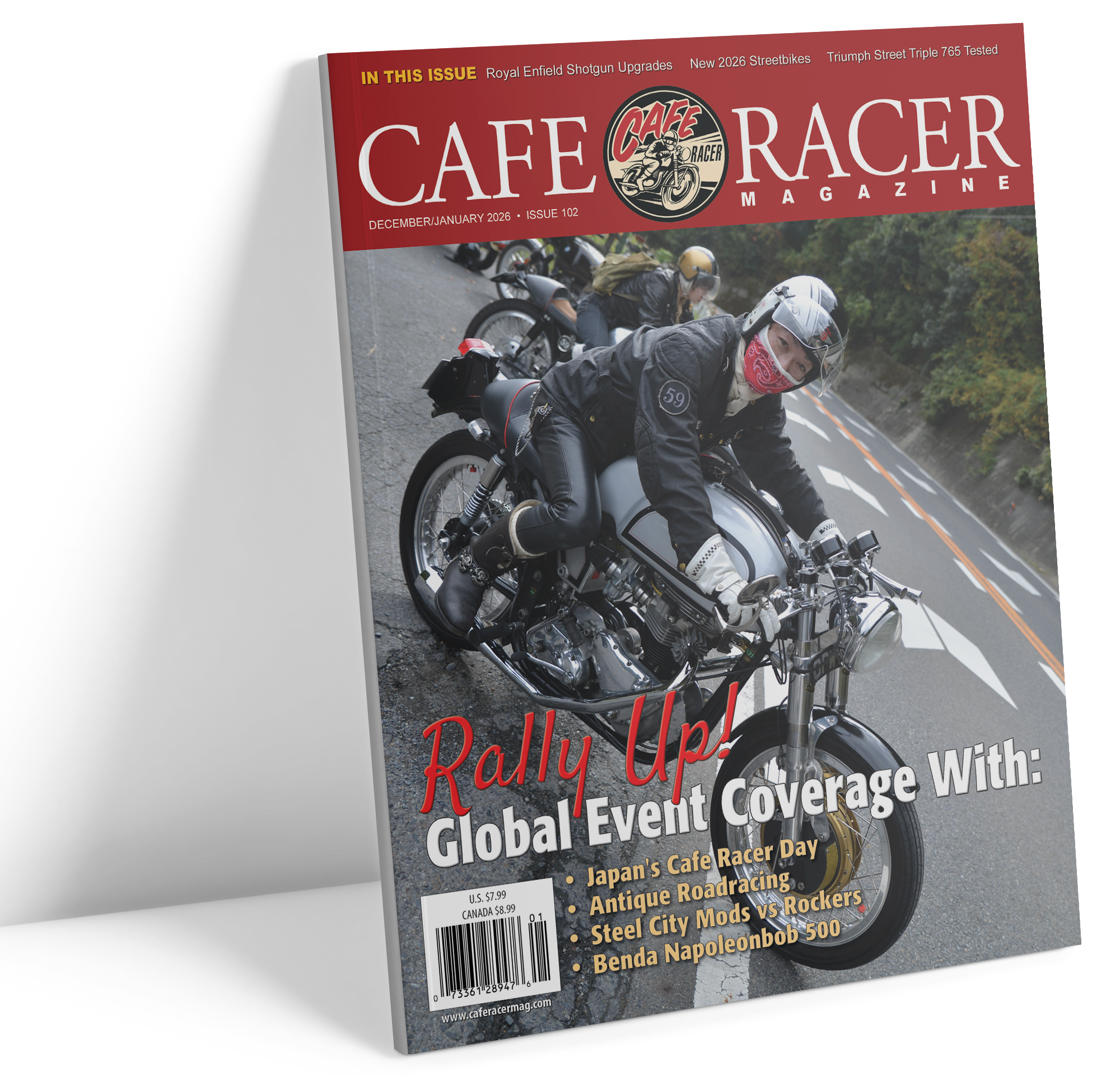 Out now, Café Racer’s latest issue featuring Steel City Mods VS Rockers, British Bike Day Japan, AHRMA Weekend, and the Turbo Suzuki G5 Special. Get yours today!